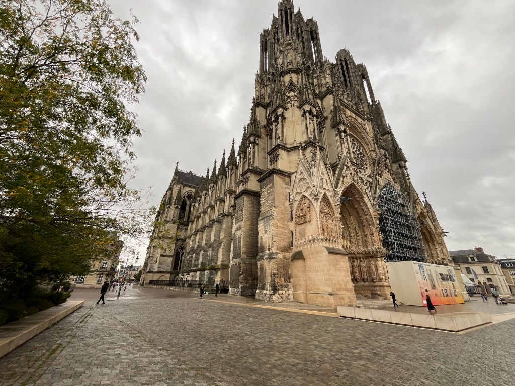 Rouen to Reims was our longest travel day. We made it to Reims early evening. Due to the later arrival, our ‘must see’ list had to be adjusted. We walked around and happened to stumble upon a … CATHEDRAL. Shocker! But this cathedral looked dark and a little dingy. I know, I know mamas, I should cut it some slack since construction started in the 13th century!!!